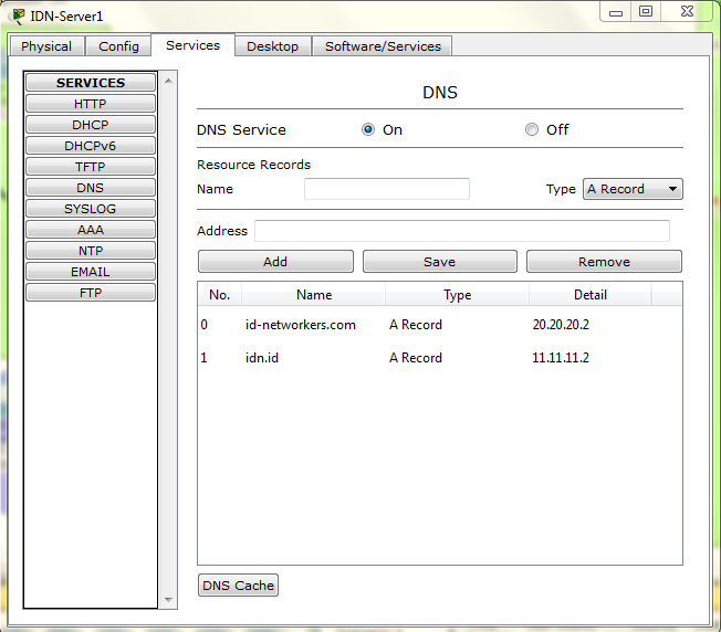 Atur DNS record id-networkers.com (20.20.20.2) dan idn.id (10.10.10.2)
